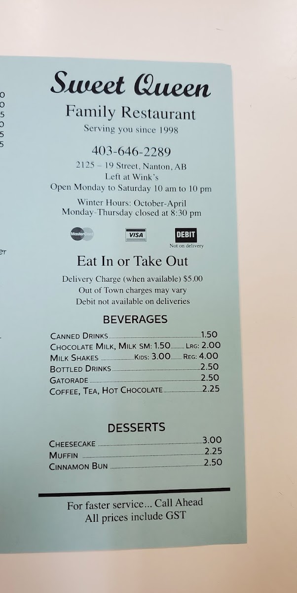 Welcome to Sweet Queen Family Restaurant, a beloved hidden gem in Nanton, Alberta, that promises a hearty menu brimming with local favorites. Nestled at 2125 19 St, this restaurant has been cherished by the community for over two decades, having recently transitioned to new owners who have successfully maintained its stellar reputation.